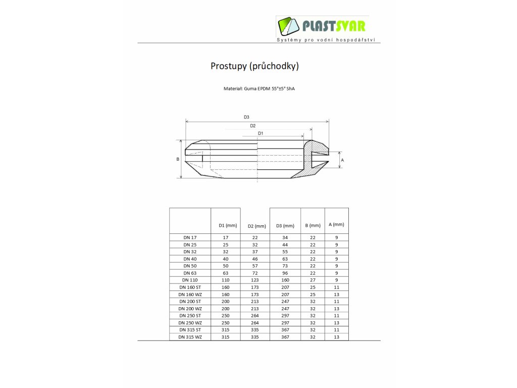 Průchodka je vyrobena z kvalitního pružného materiálu, který zajišťuje dlouhodobou těsnost spoje i při drobných pohybech potrubí nebo změnách tlaku. Je vhodná pro instalaci kanalizačního i vodovodního potrubí odpovídajícího průměru DN17.